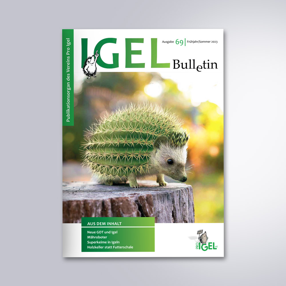 Im Frühjahr/Sommer 2023 ist unser kleiner Kaktus-Igel auf dem Cover des IGEL Bulletin erschienen. Auch wenn es schon etwas her ist, möchten wir euch das Bild dazu nicht vorenthalten.