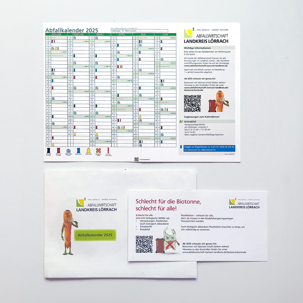 Nach der Kampagne mit den Abfallmonstern haben wir nun auch den Abfallkalender für die Abfallwirtschaft in Lörrach überarbeitet. Dabei haben wir ein bisschen Platz für eines der Abfallmonster gemacht. In leicht abgewandelter Form zeigt sich hier das Gemüsemonster und schaut genauer hin was so alles in die BIOtonne entsorgt wird.
