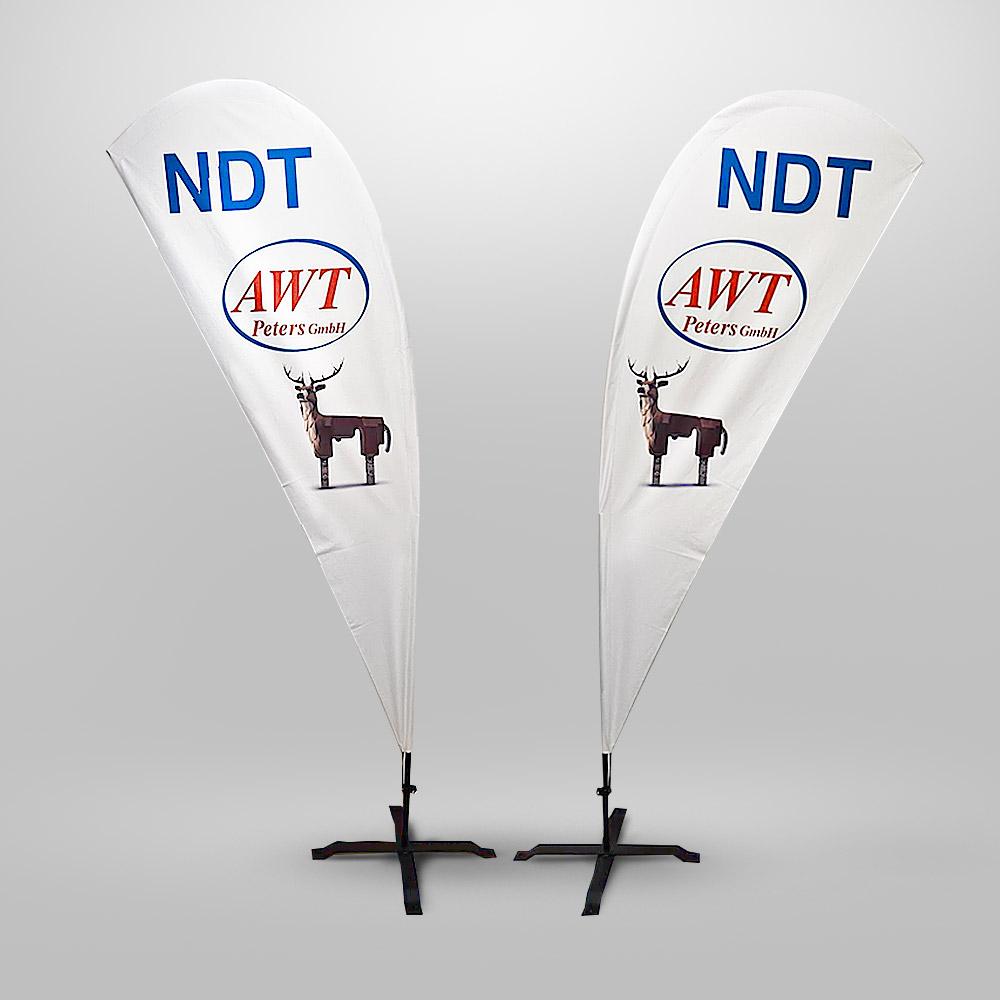 Für die AWT-Peters GmbH haben wir diese Beach-Flag gestaltet und produziert. Klassisch und wirkungsvoll wird man mit solchen Werbeträgern auch über so manchen Köpfe hinweg sichtbar.